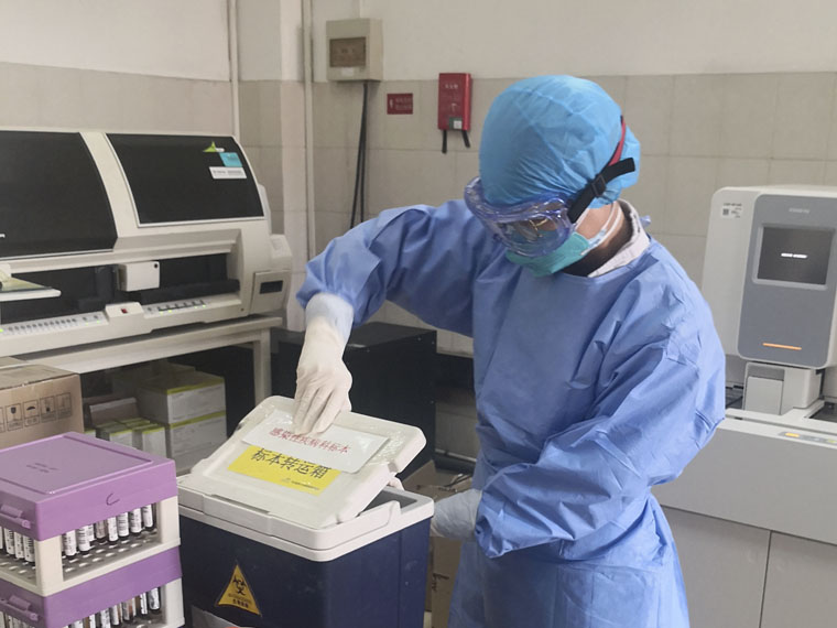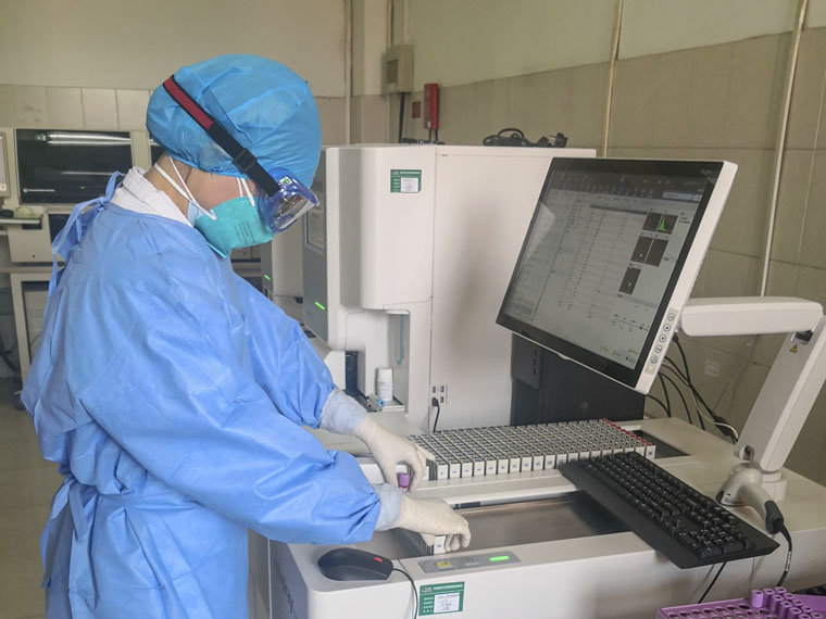 感染疫情的蔓延对检验需求与日剧增,检验科人员成了除临床医生外,距离病毒最近的人,为临床提供血常规、CRP、血气分析、凝血功能、肝肾功能、电解质、心肌酶、心肌损伤标志物等急诊检验项目,辅助临床诊断。
