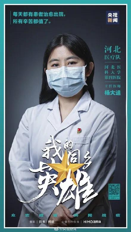 同时,央视新闻官方微信号以“致敬我的同乡英雄!为河北医疗队点赞!”为题制作专题微信,我院感染性疾病科副主任杨大运,重症医学科副护士长申康康榜上有名。