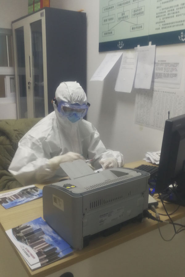 在发热门诊,她组织全体队员认真学习新冠肺炎诊疗方案最新版(第七版),规范发热门诊诊治流程,再次培训无菌观念,时刻强调做好自我防护,悉心为大家检查防护服穿脱情况,要求“一个都不能少,一个也不能掉队”。她的防护服一穿就是6个小时,每天12个小时坚守在岗位上,而脱下防护服的第一件事就是去厕所和冲掉一身的汗水。