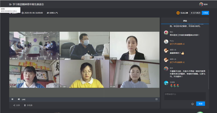 翟书记指出,在五四青年节到来之际,习近平总书记深情寄语新时代青年,高度赞扬广大青年在抗击新冠肺炎疫情中的良好风貌,鲜明指出了当代青年成长成才的正确道路,充分体现了以习近平同志为核心的党中央对广大青年的殷切期望,为我们做好工作提供了根本遵循。他希望,医大青年要牢记总书记的嘱托,将其内化于心、外化于行,一起迎接新时代,奉献新时代,创造新时代,在新时代为建设社会主义现代化强国做出每个人的贡献。他对医大青年的成长成才提出了三点希望:一是要以“心怀家国”之情坚定理想信念;二是要以“奉献社会”之心践行服务基层;三是要以“坚忍不拔”之志练就过硬本领。