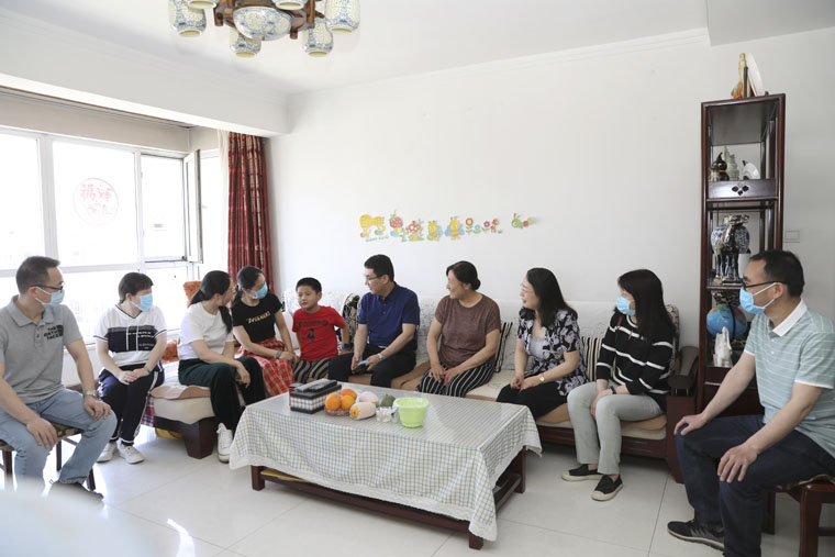 王琦的家里整洁温馨,大家与王琦母亲、爱人、孩子围坐一起拉起家常。李晓玲副书记握着王琦母亲的手,详细询问了老人的身体状况、家里的情况,并表示,家里如果遇到困难,一定及时反映,医院会尽最大的努力帮助解决,科室、医院党委是你们的坚强后盾。何宏涛副院长介绍了王琦在医院工作和支援非洲的情况,目前王琦援非抗疫任务进展顺利,获得政府和大使馆的一致好评,已经抵达刚果(布)开展下一阶段工作。王琦母亲是一名老党员,她说,王琦支援万里之遥的非洲,自己确实惦念,但也支持他的选择,感谢医院党委对王琦的关心和信任。