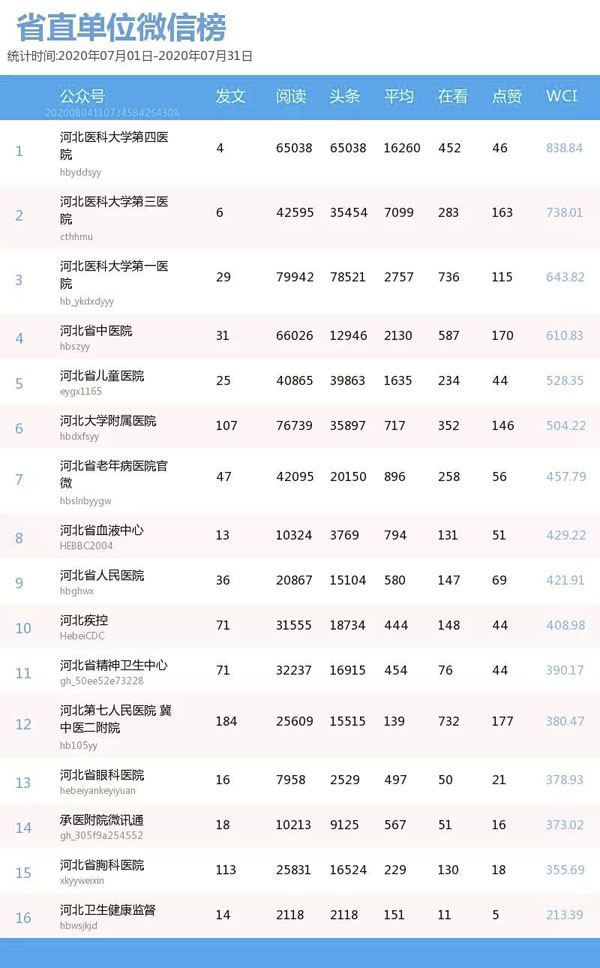 省直单位微信影响力榜单