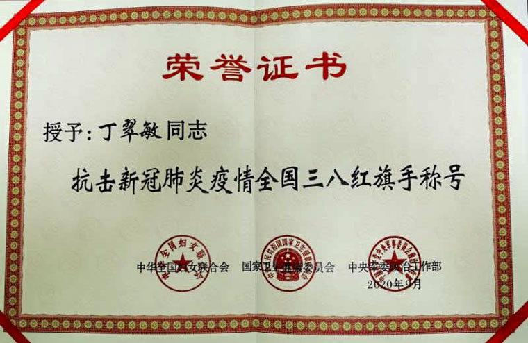 我院丁翠敏同志获“抗击新冠肺炎疫情全国三八红旗手”称号