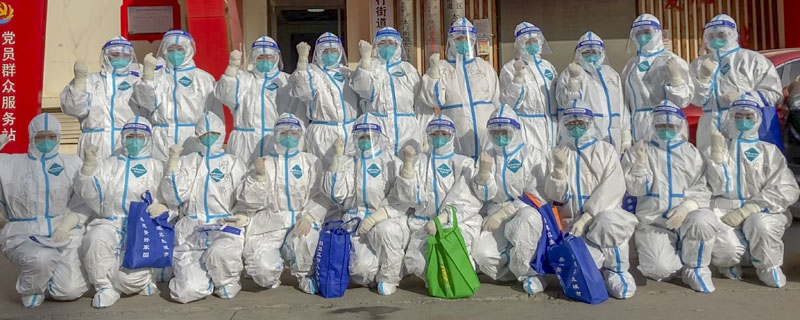 口泌外科的李云娇从16日开始就一直参与核酸采集工作,她记不清有多少天没有见到女儿和儿子了,今天是她小儿子的4岁生日,她把祝福写在防护服上,让这个别样的生日更有意义。手术室徐欣华带领队员率先承担高风险单元的采集任务,同时还帮助其他小组分担工作。由于上轮执行核酸采集任务时气温太低,耳鼻喉科高超的手部出现冻伤,多年的腰疾也因着凉复发,一度累得站不起来。此次,她还是勇敢地站在了外采的队伍中。消化内科的张茜,未告知大家刚下夜班,毅然加入到队伍中。出征前,放疗科张钧主任医师和耿文慧护士长还为本科室的张媛媛准备了御寒棉衣。