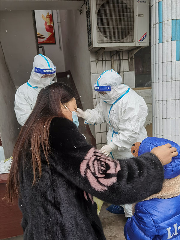 为保证采集工作有序、顺利进行,在执行采集任务前,他们提前与村干部对接,调配物资并合理安排队员分组;执行采集任务时,他们主动承担入户采集这项相对辛苦且风险较高的工作。当他们穿着防护服踏过布满树杈的土路,滑过村口阴凉处冻住的冰面,迈过门口垒的高高的台阶,耐心、细致地完成名单上每一户人员的采集工作后,村民们纷纷表示感谢,有的鞠躬、有的竖起大拇指,还有一个5岁的小姑娘现场为他们演唱了一首《听我说谢谢你》,驱走了疲惫,在他们脸上露出了欣慰的笑容。采集任务结束后,他们还及时与队员们进行沟通,一起想办法提高工作效率。