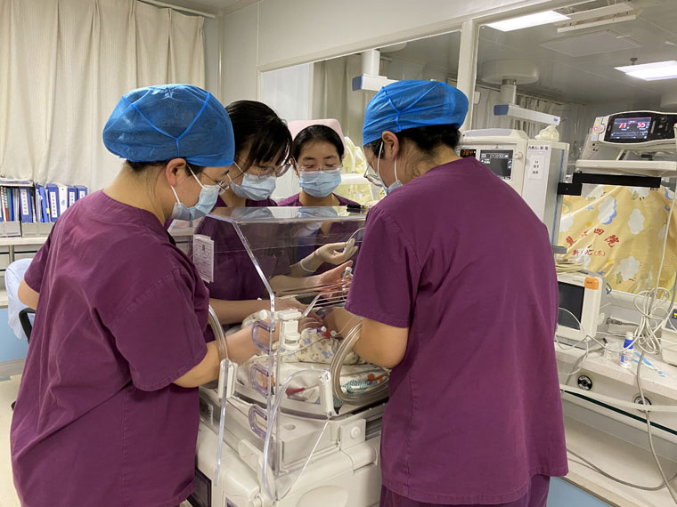 在东院区的新生儿室,医务工作者正在积极抢救一例25周的早产儿。