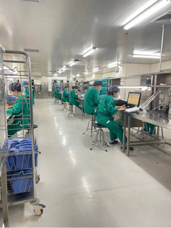 消毒供应中心的职工一丝不苟地进行着清洗、灭菌、检查、包装等工作,为医疗工作保驾护航。