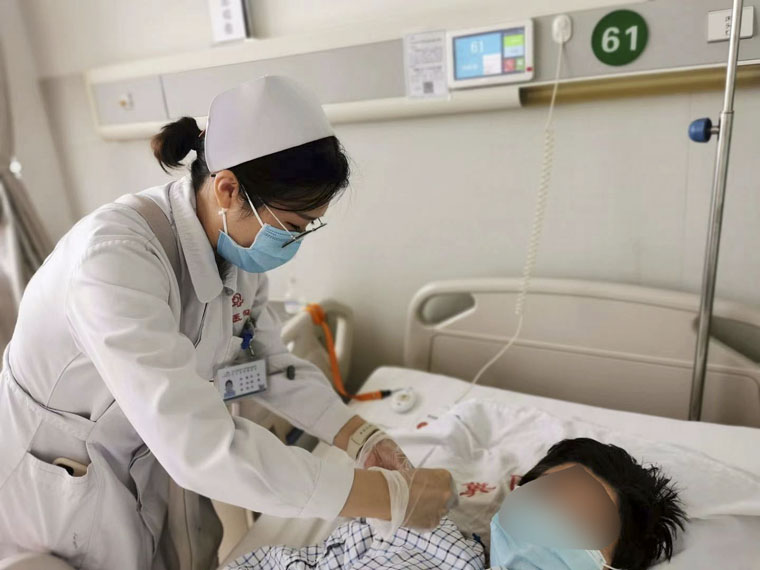 妇科三病区的护士姐妹为患者进行床旁护理。
