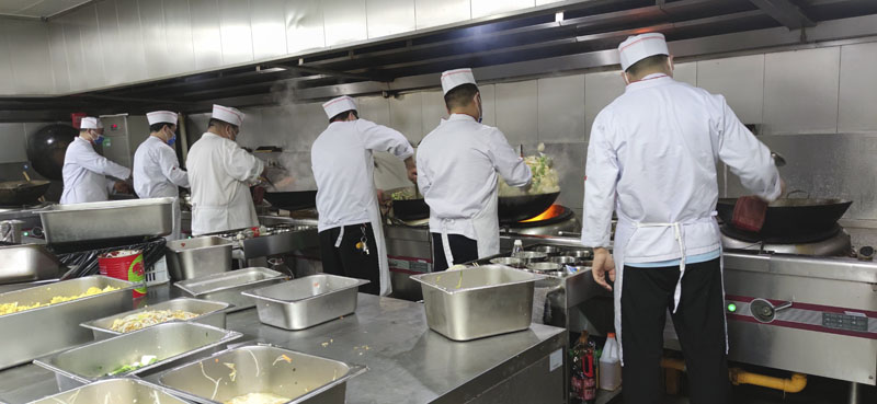 由于石家庄市公交、地铁、出租车都停运了,部分居住较远的职工就住在食堂里,方便工作。还有一些职工居住的小区调整为中高风险地区,如果再进入小区就不能出来了,大家也主动放弃回家,和大家吃在一起,干在一起,时刻保持战备状态。
