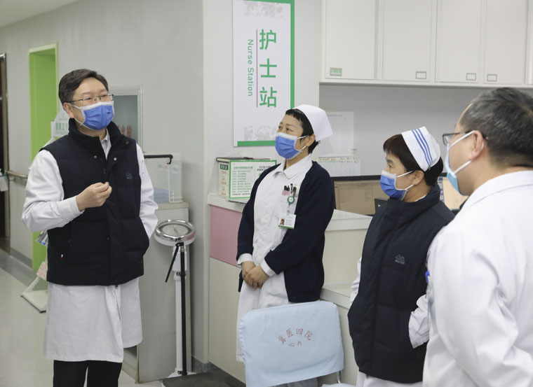 1月20日,彭利副院长带领院办室、门诊部、医务处、护理部、院感科、医保办、信息管理处、基建处、保卫处等职能部门负责人,就我院疫情防控、安全生产等情况开展行政查房。