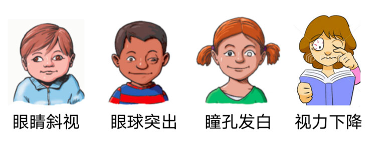 眼睛表面的肿瘤很容易被发现,眼球后边(也就是眼眶)和眼睛里面的肿瘤常被人忽视或延误治疗,这些隐藏起来的肿瘤会影响眼球的位置,导致眼睛斜视或者眼球慢慢突出。眼睛里面的肿瘤最不容易发现,小孩子有可能表现为瞳孔发白,大人则往往到影响视力了才被发现。