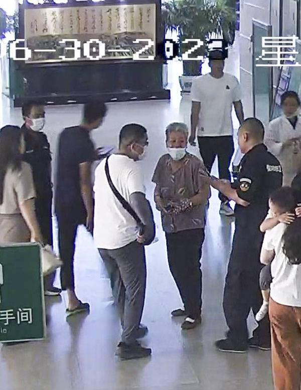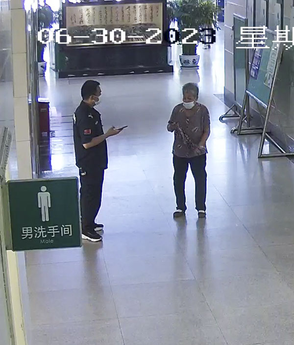 “不好意思,我的母亲刚刚走失了,她是聋哑人,请帮我找找!”面对就诊家属赵先生的紧急求助,东院区保卫处人员祁豪豪、武江仔细问老人容貌及衣着特征,在留好赵先生的联系方式后分头行动。他们一边在中控室查看监控录像,一边在可能走失的地区进行搜寻。约10分钟后,监控中发现二楼电梯口有着装相似老人,保卫处立即通知巡查人员前去询问,经确认是刚刚走失人员。赵先生喜极而泣,忙向我院职工连声道谢。