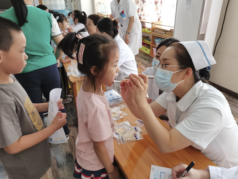 为帮助儿童养成良好的口腔习惯,在东院口腔科门诊主任刘健,东院区口泌病区护士长金婷婷及口腔科护士长刘伟的带领下,多位医务人员前往某社区幼儿园开展义诊宣教活动,为215名幼儿进行口腔检查,教孩子们学唱朗朗上口的刷牙歌,示范正确的刷牙方法,引导孩子们早晚正确刷牙,鼓励大家争做一个口腔健康的好宝宝,并向家长发放爱牙宣传资料。