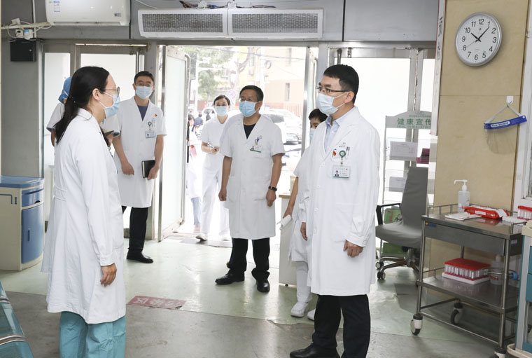 9月26日,何宏涛副院长带领相关职能部门先后到急诊科、120站点、疼痛康复科、产科、外二科、外三科、手术室、麻醉科、发热门诊、放疗技术组、药库等科室进行实地查看。每到一处,何宏涛副院长都与科室负责人深入交流,了解科室收治病人情况、急危重症患者救治情况、药品储存、毒麻药品管理及SPD系统运行情况等,并现场抽查值班医生到岗情况。