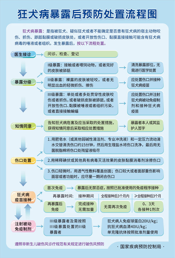 健康日历 | 狂犬病暴露后预防处置流程图