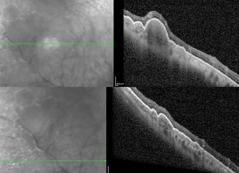 郝玉华主任及其团队仔细翻阅既往病例资料,完善相关眼科检查,根据双眼玻璃体内大量细胞、OCT提示视网膜外层结节样病变和眼底隐约可见黄白色病灶的症状,高度怀疑双眼眼内淋巴瘤合并中枢神经系统受累,经与患者及家属详细交代病情,决定行右眼诊断性玻璃体切除手术以明确诊断。