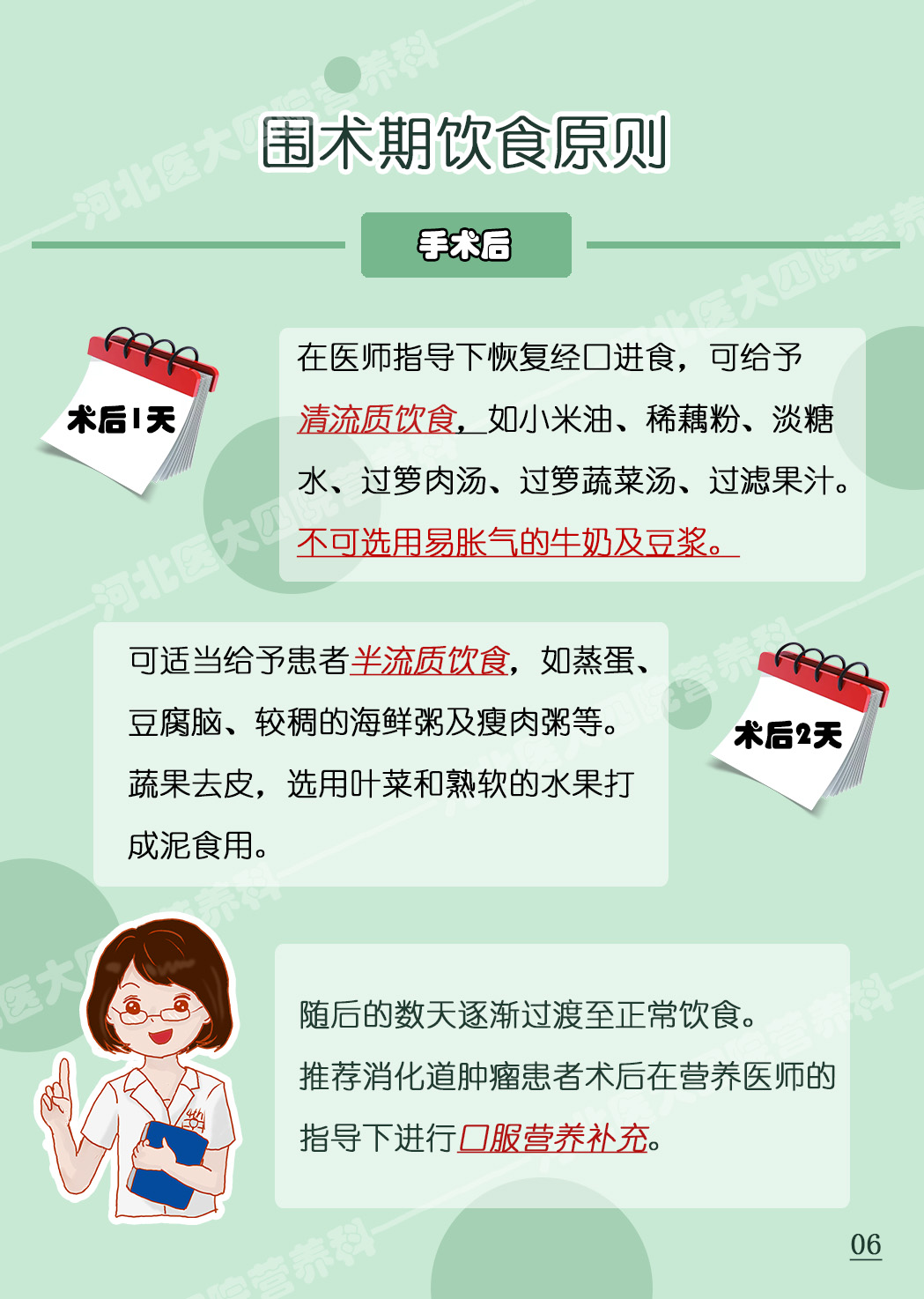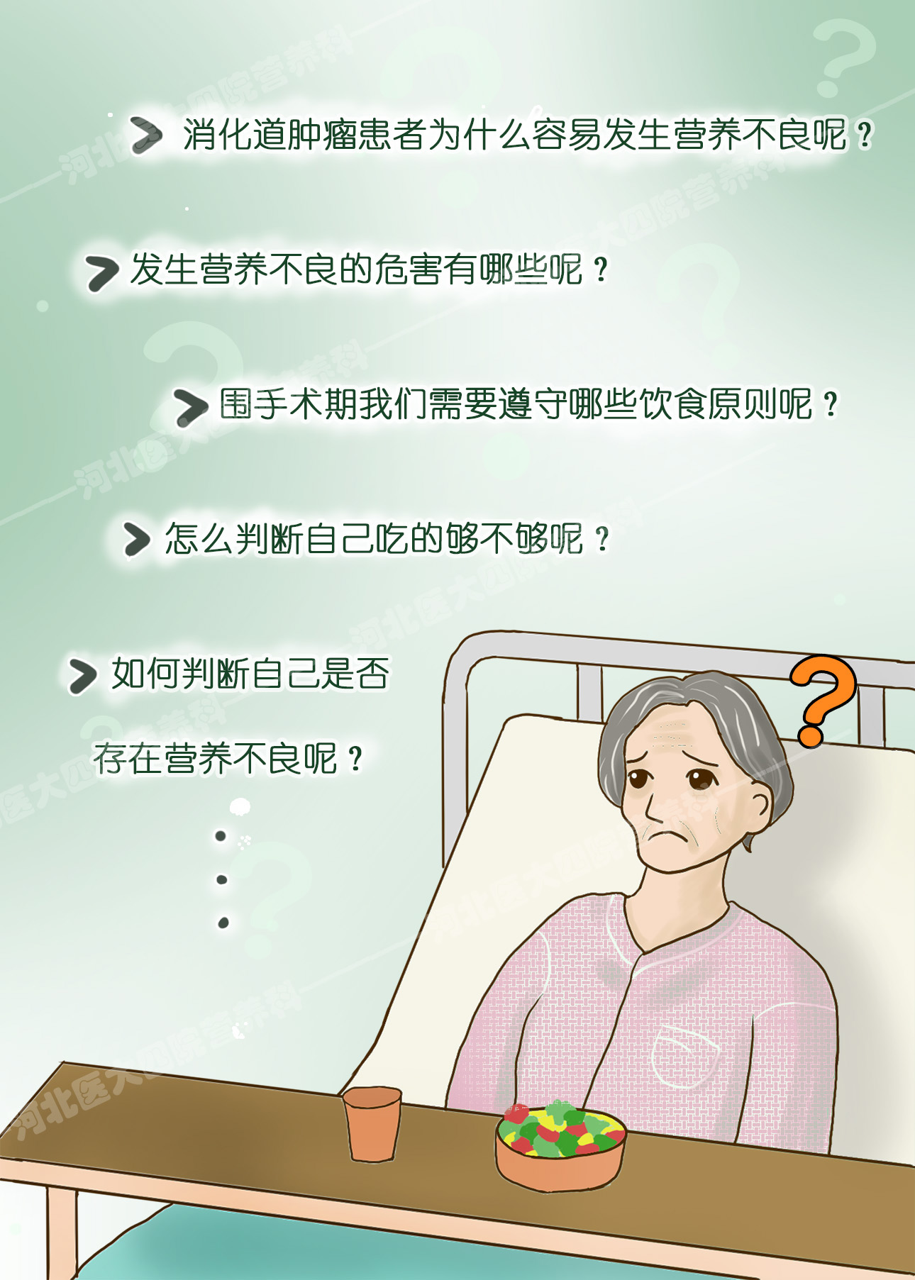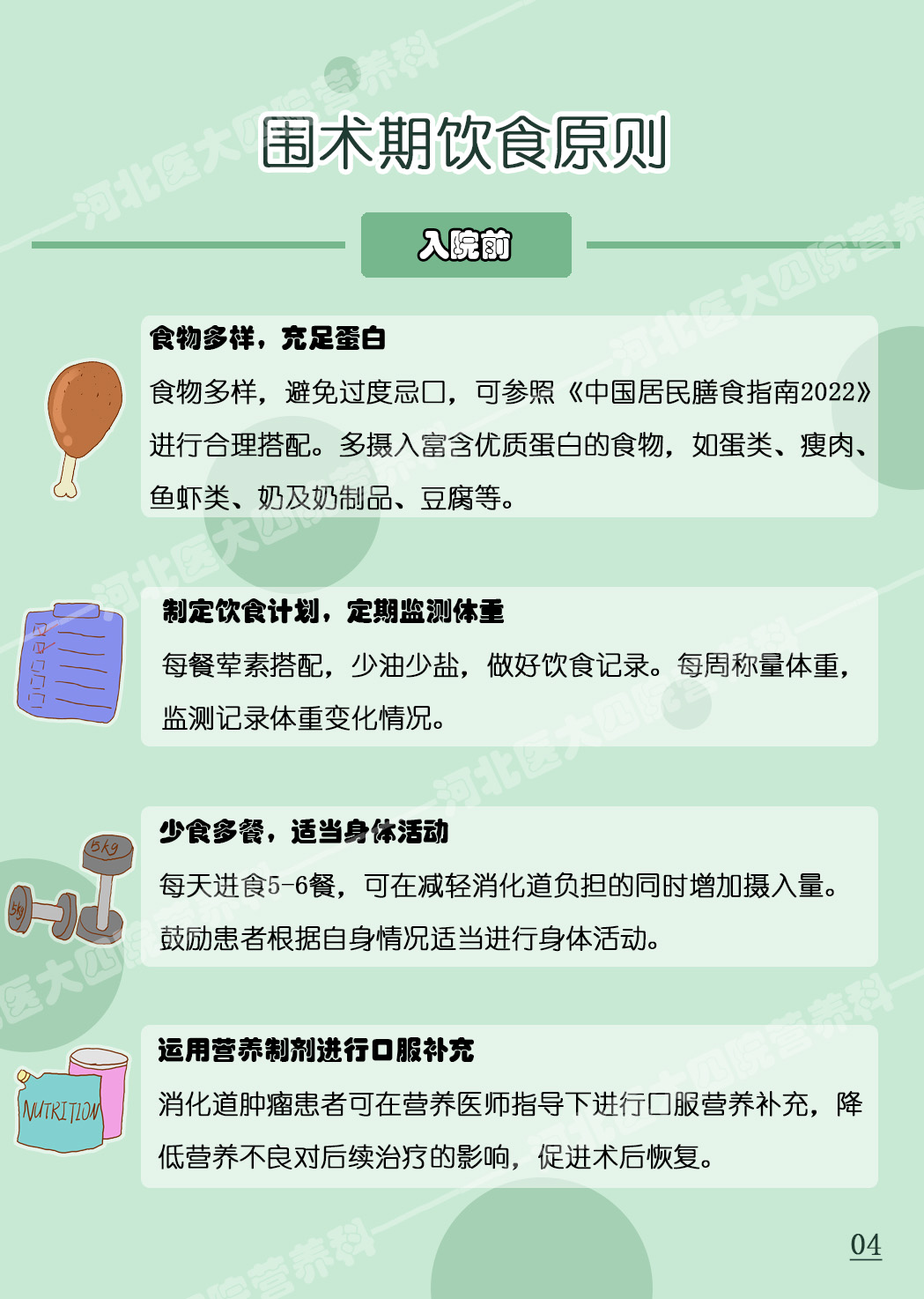 作品《围手术期你吃对了吗——消化道肿瘤篇》通过生动的、科学的系列图片介绍了消化道肿瘤患者在围术期的饮食原则及注意事项。