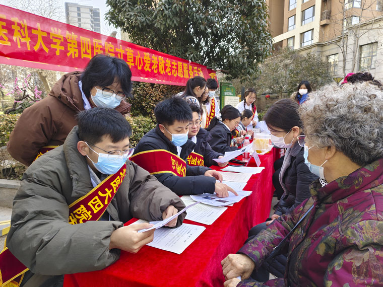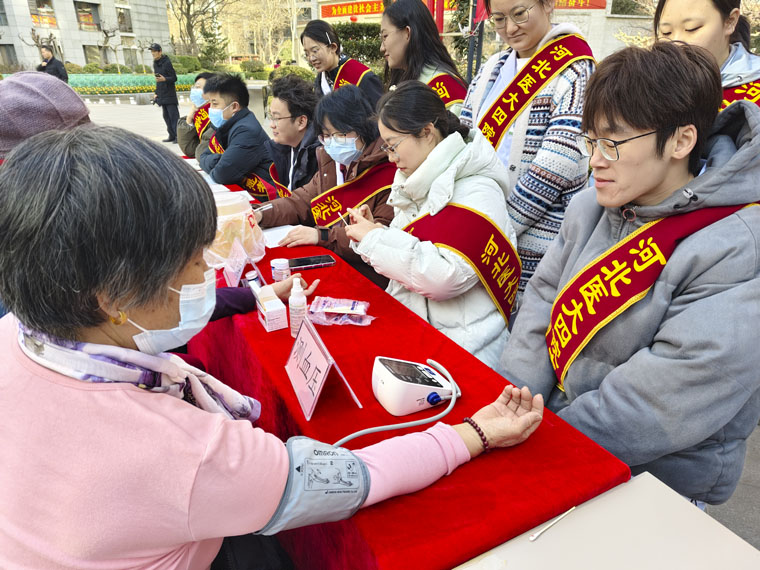 为认真学习贯彻习近平总书记关于深入开展学雷锋活动的重要指示精神,弘扬“奉献、友爱、互助、进步”的志愿精神,3月3日,团委组织13名青年医务人员及临床护理专业优秀学生代表,赴石家庄市长安区荣景园小区开展“寸草心爱老敬老”志愿服务活动,通过提供现场咨询,免费检测血压、血糖等方式,惠及近百人次,受到了社区居民的普遍称赞。