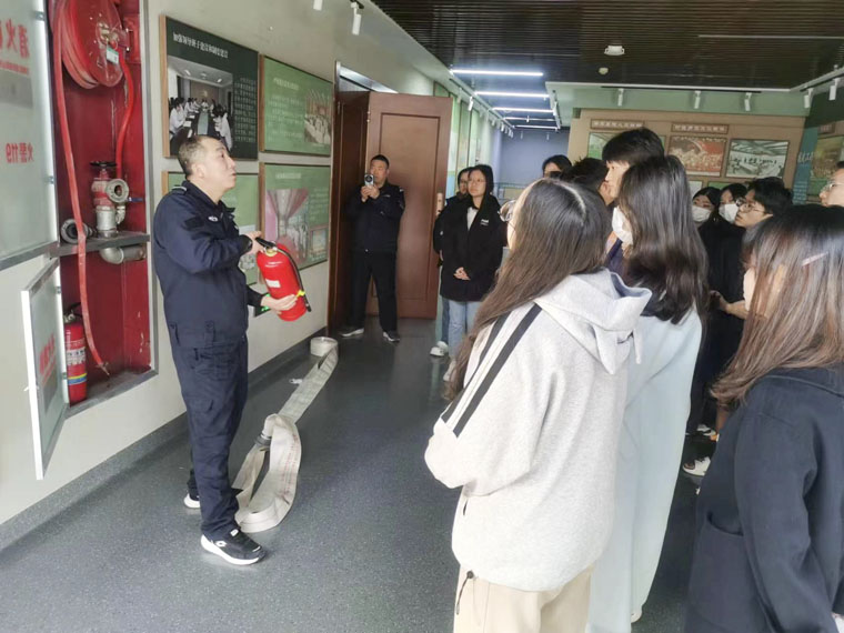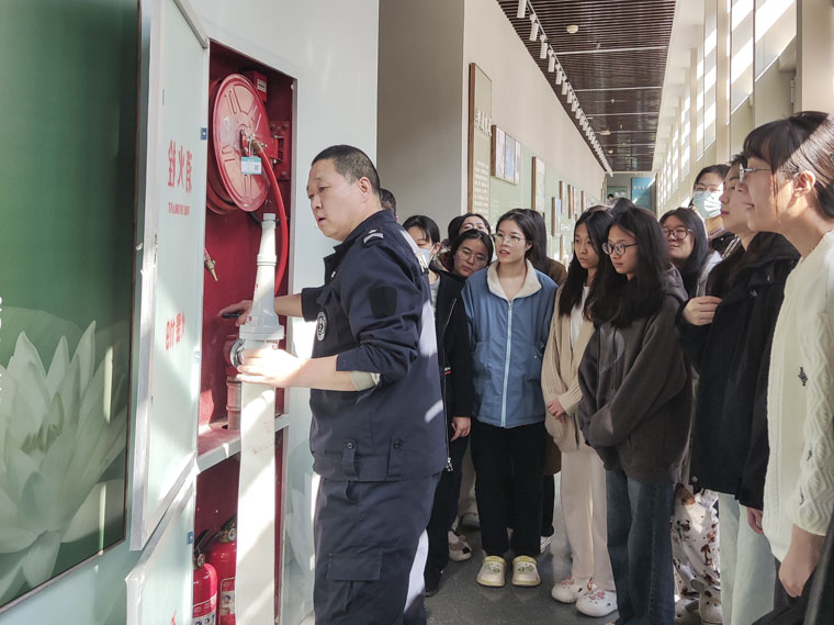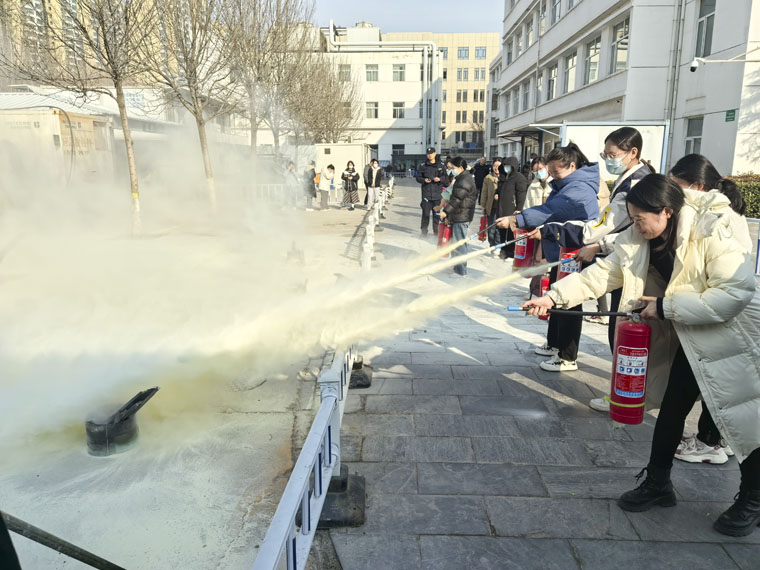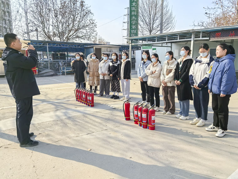 为提高学生消防安全意识和逃生自救能力,科室邀请保卫处王海兵、李建东、张卫彬和高燕伟开展消防知识讲解和疏散逃生演习训练,并示范了消防水带、灭火器等常用消防设施的使用方法,以及发生火灾时的逃生自救方法。培训中,保卫处人员通过模拟宿舍区火情,指导学生进行疏散演练,每名学生还拿起灭火器实地体验了灭火操作,领会“提、拔、握、压”的操作流程。