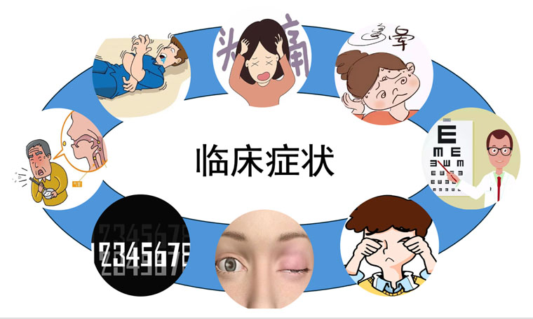 较小的动脉瘤多无临床症状,常在健康体检或其他原因接受头部影像学检查时发现较大的动脉瘤可引起头痛、头晕、眼部疼痛、眼睑下垂、视力障碍、复视、癫痫、动眼神经麻痹、饮水呛咳、声嘶、吞咽困难等临床症状。