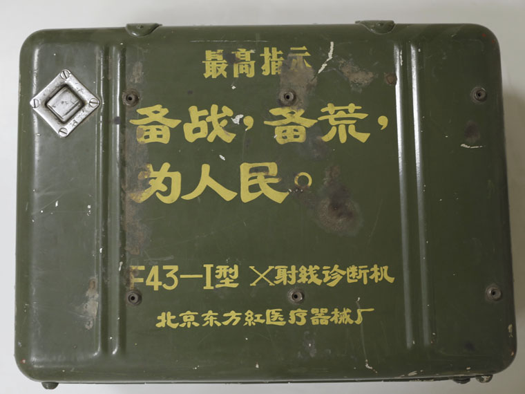 上世纪60年代,我院响应“备战备荒为人民”的号召,购进第一台便携式X线机——北京东方红医疗器械厂F43-I型X线诊断机,其体型微小,有一个小支架,支架一侧是一个X线管,另一侧对应一个大约5*7英寸显示屏,可以在室外进行胸部、四肢关节的透视和摄影。