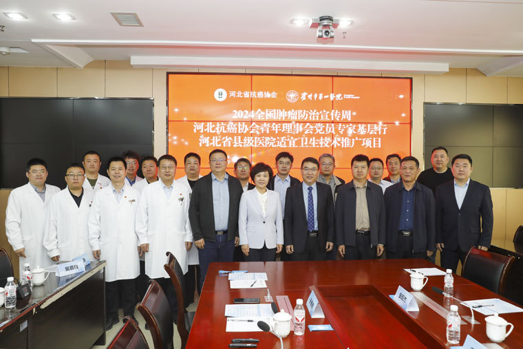 在第30个全国肿瘤防治宣传周期间,为普及抗癌健康知识,全面提升全社会癌症防控意识,4月20日,河北省抗癌协会青年理事会常务副理事长、我院副院长何宏涛带领河北省抗癌协会青年理事会党员专家团(胸二科王洪琰、肿瘤内科王玉栋、放五科周志国、CT磁共振科李月考、呼吸内科李斌)及我院医务处人员在沧州市第四医院(南皮县人民医院)举行了河北省抗癌协会青年理事会党员专家团基层行暨河北省县级医院适宜卫生技术推广项目(肺癌多学科规范化诊疗县级推广项目)活动。