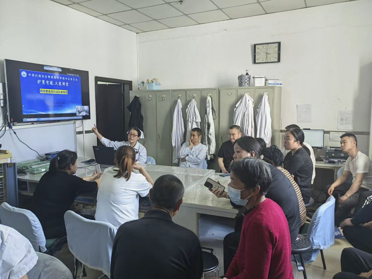 腹盆放疗科高蕾蕾主管护师与泌尿外科护士长金婷婷分别讲解了有关放疗的方式、原理、流程、注意事项和前列腺癌症状的治疗手段、风险因素及预防措施。消化内科护士长李翠珍和儿科李宁主管护师分别围绕便秘的发生率、诱因、治疗措施及儿童生长发育规律、影响身高因素、矮小症发病原因和治疗方法等方面进行讲解。神经外科郭靖主管护师与介入科吕沙沙主管护师围绕脑肿瘤及肝癌的风险因素、症状、治疗手段及早期发现方法等方面分享。护理专家们语言通俗易懂、内容贴近实际生活,有利于提高大众早诊早治的观念。东院区胃肠外科田夏青护士长还组织了线下患教会活动,与患者及家属面对面深入交流,答疑解惑。
