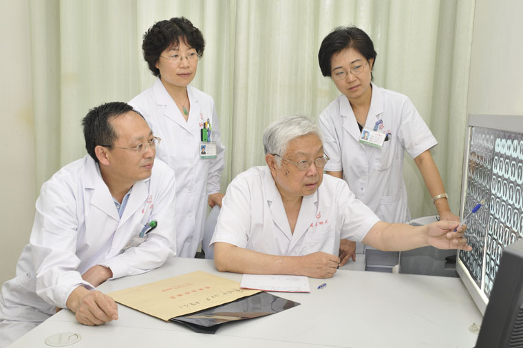 从病历本中,能够清晰地看到,这名患者每次就诊时的症状如何、查体情况、接受放疗次数,每次血液学及造影报告对病情的评估,一字一句、简洁明了,无论是周道安主任,还是乔田奎主任,还有陈秋立教授、朱孝珍教授、王敬一老师,他们都曾对这位病人认真诊治。原来,这是36年前曾经在放疗科接受治疗的一名患者,几十年来,她一直在我院放疗科就诊,期间很多前辈已经退休,而这位老奶奶此刻仍安然出现在我们眼前,激动、自豪、担忧,种种情绪搅乱了我的内心,眼眶竟不自觉湿润起来。