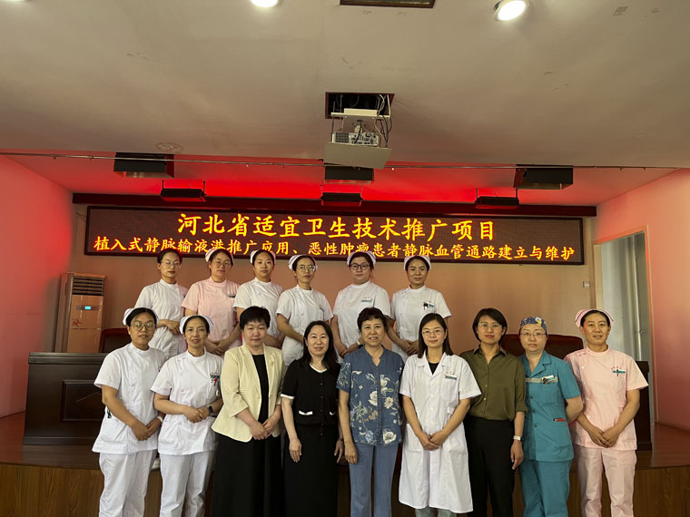 为进一步加强落实《河北省“适宜卫生技术推广示范县”建设方案(2023—2025)》要求,提高基层医院医疗、护理水平,近日,在河北省护理学会首席专家康琳主任和乳腺中心护士长王建新带领下,我院静脉治疗护理专家团队赴保定市望都县医院开展“植入式静脉输液港推广应用、恶性肿瘤患者静脉血管通路建立与维护”适宜卫生技术推广项目,县医院医护人员近百人参加了培训。
