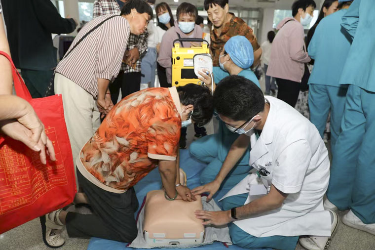 近日,在第25个“世界急救日”期间,东院区急诊科负责人韩梅带领科室医护人员,在门诊大厅开展宣传活动及心肺复苏急救技能的科普培训。本次主题为“急救与运动”(First Aid And Sports),旨在让更多人重视急救知识,掌握急救技能技巧,降低院外呼吸心跳骤停患者的致死率和致残率。