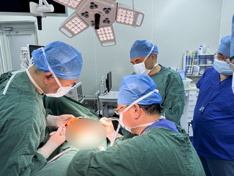 一名49岁的女性患者,患有左乳腺浸润性导管癌cT4N1M0 IIIB期及腋窝淋巴结继发性恶性肿瘤,并经历了数月的新辅助化疗。面对患者的严峻病情,回天立副主任医师提出实施全麻下左乳癌改良根治术,并结合背阔肌肌皮瓣转移及假体植入进行一期乳房重建的方案,患者及家属表示认可。在回天立副主任医师的带领下,手术团队历经7个小时的精细操作,成功完成这一复杂手术。术后,患者重建的乳房形态自然,不仅满足医学治疗的需求,更兼顾美学效果,为患者带来了极大的心理慰藉,帮助其提升了生活质量。