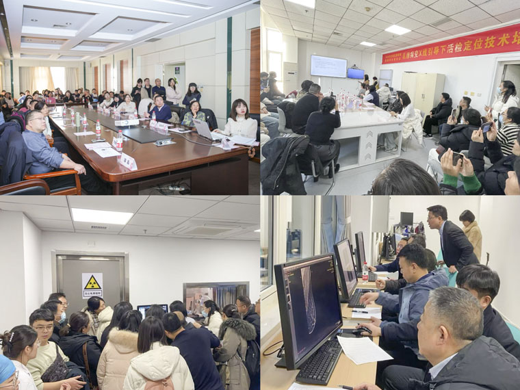 在乳腺病变X线引导下活检定位技术培训班分会场,我院放射科李亚男主治医师、黄景香护士长,介入病房副护士长魏敬妙、夏青青技师,以“乳腺三维立体定位技术”“对比增强乳腺X线摄影中对比剂的应用”“对比增强乳腺X线摄影中留置针的使用要点”“乳腺病变活检定位过程中设备操作要点”等主题进行深入交流。会后,与会同道来到我院东院区放射科乳腺摄影检查室,现场观摩了由放射科医、技、护团体协作完成的X线引导下乳腺病变穿刺活检定位演示和相关并发症应急处理演练。