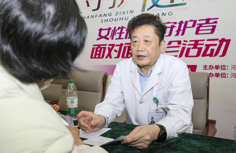 活动现场,乳腺中心刘运江教授、宋振川教授,中西医结合肿瘤科霍炳杰教授,妇科李利教授,东院产科路月梅主任医师,生殖医学科吕翠婷副主任医师等,围绕女性健康领域的高发疾病如乳腺癌、宫颈癌、多囊卵巢综合征、不孕不育及围绝经期综合征等,为前来咨询的女性提供了周到的健康服务。专家们不仅针对每位女性的个人健康状况提供了详尽且个性化的建议,还耐心细致地解答了大家在乳腺健康、妇科疾病、生殖健康以及围产期保健等方面的诸多疑问,对HPV疫苗接种、TCT+HPV联合筛查等进行了科普,帮助女性树立科学防癌观念。