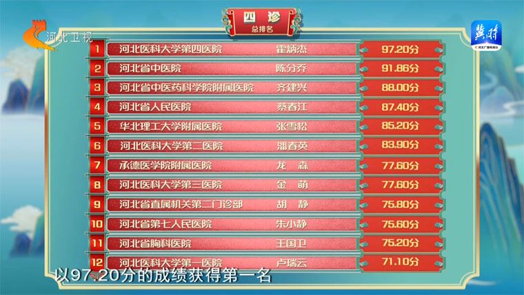 霍炳杰教授参加河北卫视“冀高一筹”河北省中医药职业技能创新大赛,并获得四诊赛道冠军