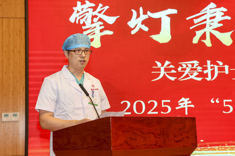 常务副院长何宏涛宣读表彰决定,同时向在护理岗位上矢志不渝、辛勤付出的兄弟姐妹们送上节日问候,激励全院职工以优秀护理人员为榜样,凝心聚力、奋勇开拓。他充分肯定了2024年我院护理工作在临床护理、教学培训、专科基地建设、科研科普等多方面取得的优异成绩。面对医院高质量发展的新机遇与新挑战,他对护理团队提出五点期望:一是坚持护理文化传承,以深厚的四院文化引领护理工作;二是深化护理服务内涵,持续提升护理质量与水平;三是加强护理人才培养,为护理学科发展注入强劲动力;四是借助信息化手段,提高护理工作效率与精准度;五是抢抓政策机遇,充分挖掘与提升护理服务价值。他号召全院护理同仁以更饱满的热情、更昂扬的斗志、更扎实的作风,护佑人民健康,推动医院高质量发展迈向新台阶。