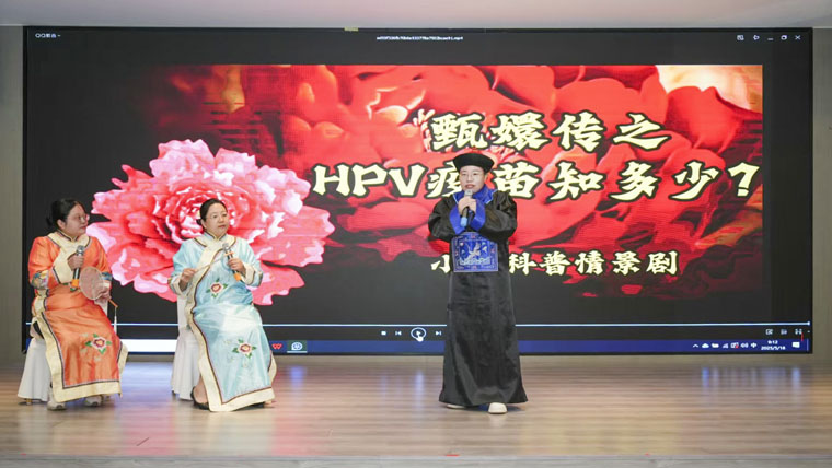 本次赛事旨在积极响应世界卫生组织提出的“加速消除宫颈癌全球战略”,加深群众对于宫颈癌的认识,培养医护人员对宫颈癌疾病预防、治疗的科普能力。我院妇瘤科张欢欢、代红红、李聪聪三人以幽默又兼具娱乐效果的形式生动演绎宫颈癌“三级预防”措施之一——接种HPV疫苗,现场传达了疾病预防理念,获得评委及观众的一致好评。