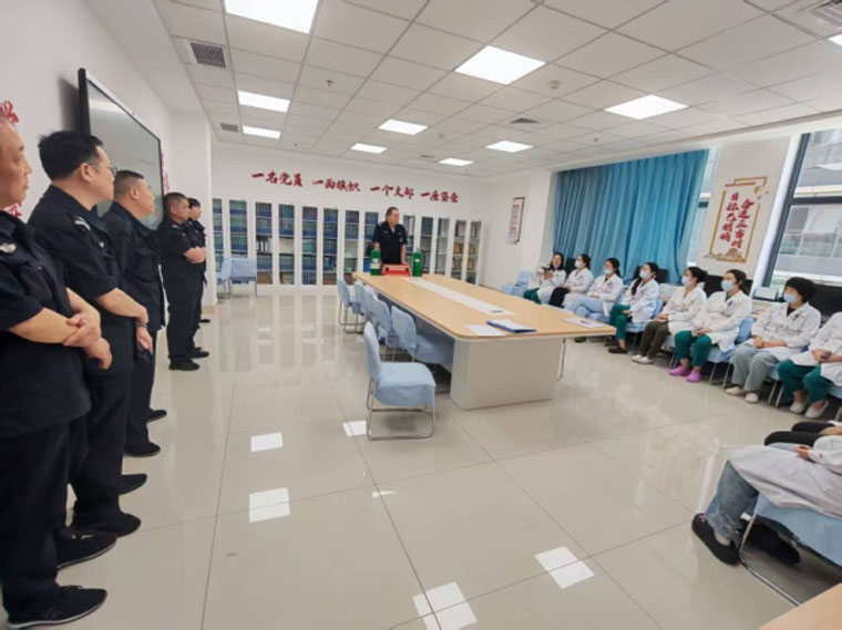 保卫处以“多渠道覆盖、分场景精准”为思路,构建立体化宣传培训体系。在两院区新楼及门诊大厅入口处,持续滚动播放安全生产警示片,让每一位来院人员直观接受安全教育;通过院区安全生产微信群、医院订阅号等线上平台,定期推送消防知识、应急技能等内容,方便职工随时学习;针对检验科、药学部、膳食部等重点科室,组织专业化安全生产及消防培训,结合理论讲解与实战演练,强化工作人员“安全无小事”的责任意识。