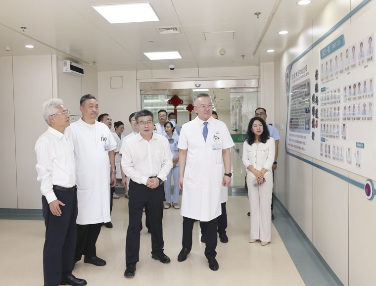 他强调,要进一步加强党建引领,特别是结合深入贯彻中央八项规定精神学习教育医德医风专项整治行动等,把党的政治优势转化为推动医疗业务发展的强大动力,以高质量党建推动医院高质量发展。要进一步加强学校和医院的融合发展,学校的人才培养、科学研究、社会服务、文化建设、国际化推进等,都要与医院的医疗、教学、科研工作紧密融合,从而更高效地破解当前发展中存在的一些实际难题。要加强医疗服务、人才培养和科研创新等关乎长远发展的核心领域建设,特别要对标国内第一方阵医院,着力加强内涵建设,提升综合实力,为推进国内一流特色鲜明医科大学建设提供坚强支撑,为健康中国和健康河北建设贡献力量。
