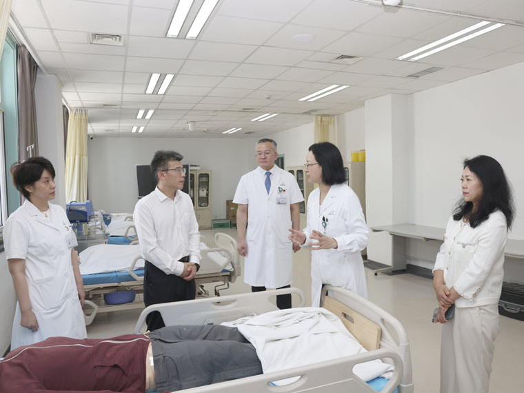 在病理科,校领导详细了解河北省数智病理中心的建设进程,以及病理诊断工作的开展情况,对我院在精准诊断方面所做的努力和前沿布局给予肯定。在肾内科,校领导考察了河北省血液净化质控中心的运行情况,关切询问了透析患者的治疗保障及中心的质量管理体系。在教学楼,校领导参观了技能培训室、学生宿舍等,仔细查看了培训设施配置、教学计划执行等情况。