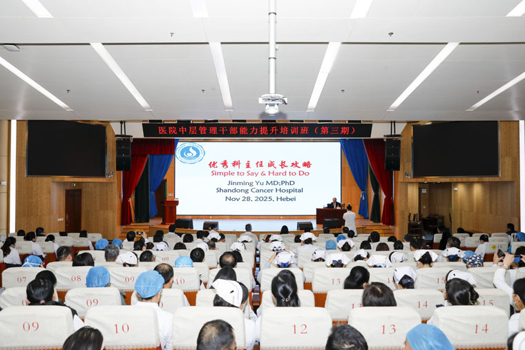 为进一步深入贯彻落实医院党委关于干部队伍建设的部署要求,提升中层干部的管理能力和履职水平,助力医院高质量发展,11月28日,我院举行了中层管理干部能力提升培训班(第三期),特邀中国工程院院士、山东省肿瘤医院院长于金明院士来我院进行授课,全体在院领导,临床医技科室医疗、护理负责人,党务行政中层干部参加。党委书记李立平主持会议。东院区同步视频。