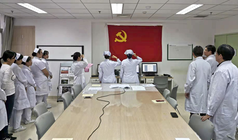 随后全体党员集体学习《论述摘编》第三部分:用新时代中国特色社会主义思想武装全党。学习完后,参会党员进行了热烈的讨论与发言。张凤瑞同志说:在前进的道路上,我们一定要加强全党的理论武装,深入学习和掌握习近平新时代中国特色社会主义思想理论体系,有了正确思想的指导,我们才能少走错路、走弯路,我们才能走的长、走的远。范立侨书记表示:我们要以习近平新时代中国特色社会主义思想为指导,在做事上下功夫,与实际工作相结合,作为医务人员,应全心全意为病人服务。他举例:现在天气渐冷,手术室护士到病房接病人时,要和病房护士一起,帮助病人在平车上躺好,盖好被子再出病房,防止病人在运送途中着凉。这看似是小事,但体现了我们对病人的关心。我们要在主题教育活动中真正做到“守初心、担使命、找差距、抓落实”。
