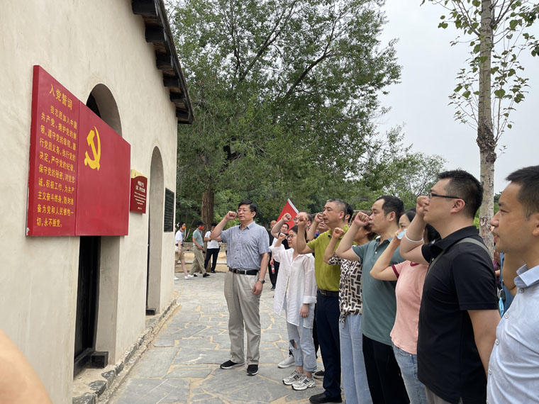 72日,第9党支部开展“喜迎二十大永远跟党走”庆祝建党101周年主题党日活动,支部书记范立侨带领党员及入党积极分子来到革命圣地西柏坡,瞻仰旧址,重温老一辈革命家的革命信仰。在七届二中全会旧址,范立侨带领大家重温了入党誓词。