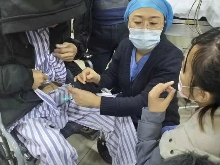 一名患血液病的少年需要植入静脉输液港,解决静脉用药通路,然而,因出生时脑缺氧,他不能正常自我表达,受到疼痛刺激就会发生全身痉挛抽搐,在病房无法建立静脉通路,难以进行后续治疗。科室医护人员术前做好床旁访视,取得小患者的认同和信任。手术中,医生细致操作,护士全程握着小患者的手,不断给予抚触安慰鼓励,成功完成静脉输液港植入。术后,患者的妈妈听到成功的消息激动地无以言表,连连拍手向我院医务人员表示感谢。少年离开介入手术室时脸上洋溢着笑容,眼里满是信任。